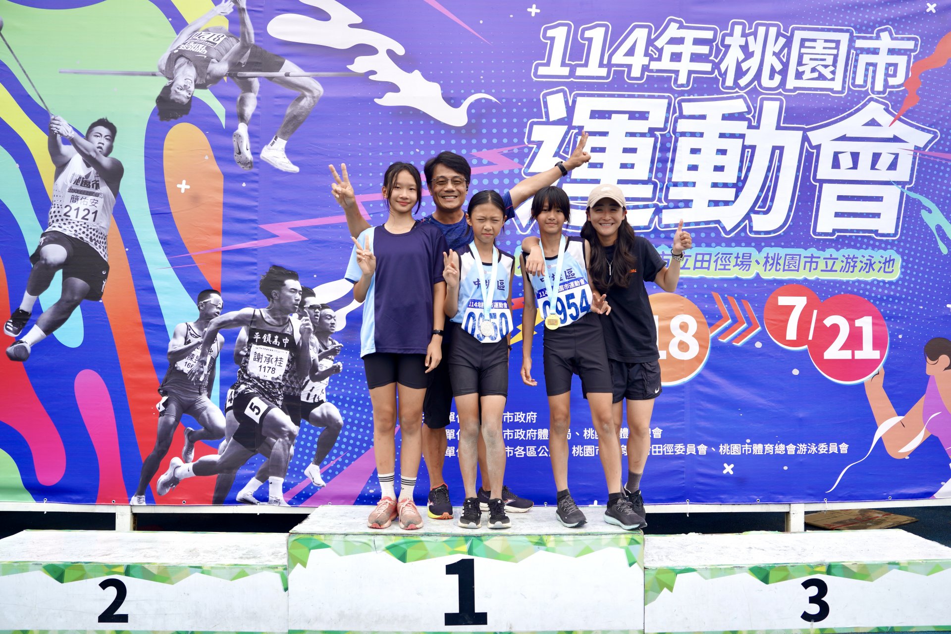 1140720桃園市運動會田徑表現優異蘇禹瑈 跳遠金牌、4*100m接力金牌、12*100m接力金牌 段詠恩 跳遠銀牌、4*200m接力金牌、12*100m接力金牌 許柏誠 12*100m接力銀牌