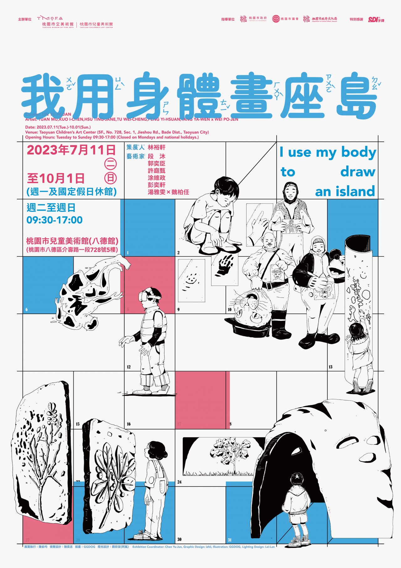| 二、 | 旨揭展覽自112年7月11日至10月1日於桃園市兒童美術館(八德館)(桃園市八德區介壽路一段728號5樓)展出,詳情請至「桃園市立美術館」網站(https://tmofa.tycg.gov.tw/)或臉書粉絲專頁查看。 |