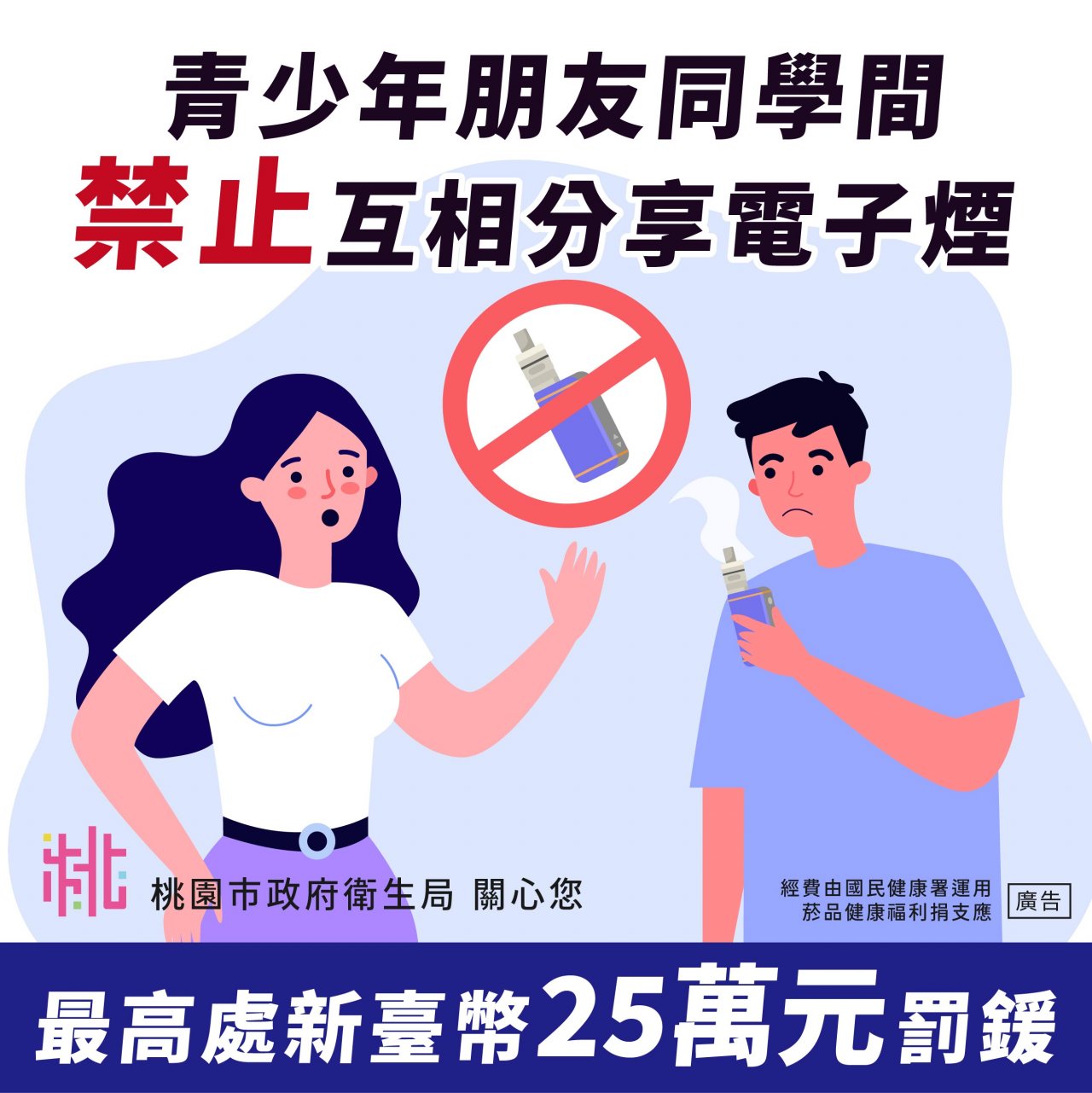 | 二、 | 為保護本市青少年免於菸品、類菸品危害及降低其使用率,本府衛生局製作「電子煙危害」衛教宣導圖卡3篇,希冀以圖象情境提升其電子煙危害相關識能,建立學生瞭解菸害防制法規定。 |