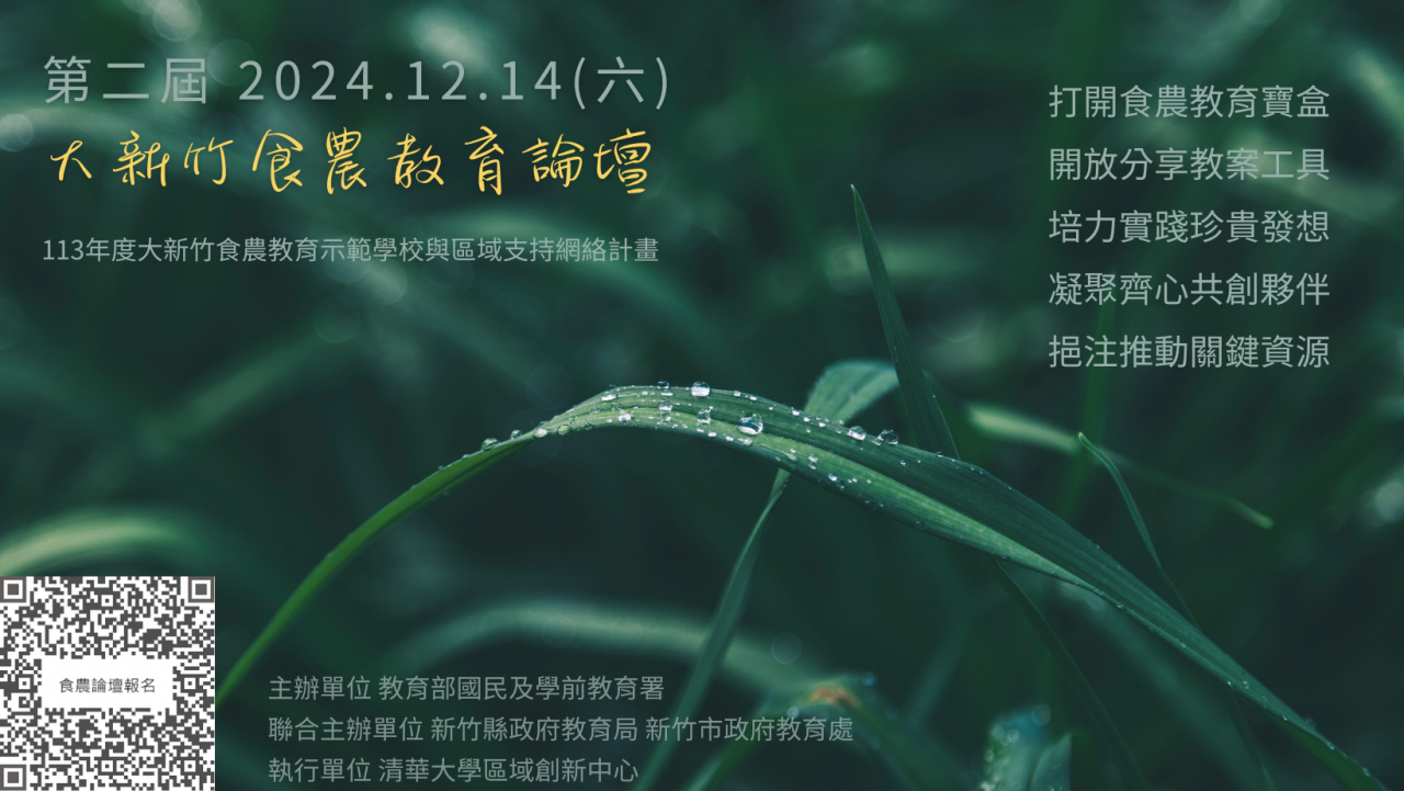 二、 | 本次活動係以區域特色飲食文化、菜市場學校、食農教育示範基地、社區大學食農教育發展經驗、學校午餐結合食農教育等主題,透過案例分享及交流對話,讓學校食農教育朝課程化、在地化、系統化之目標推展,資訊如下: |
